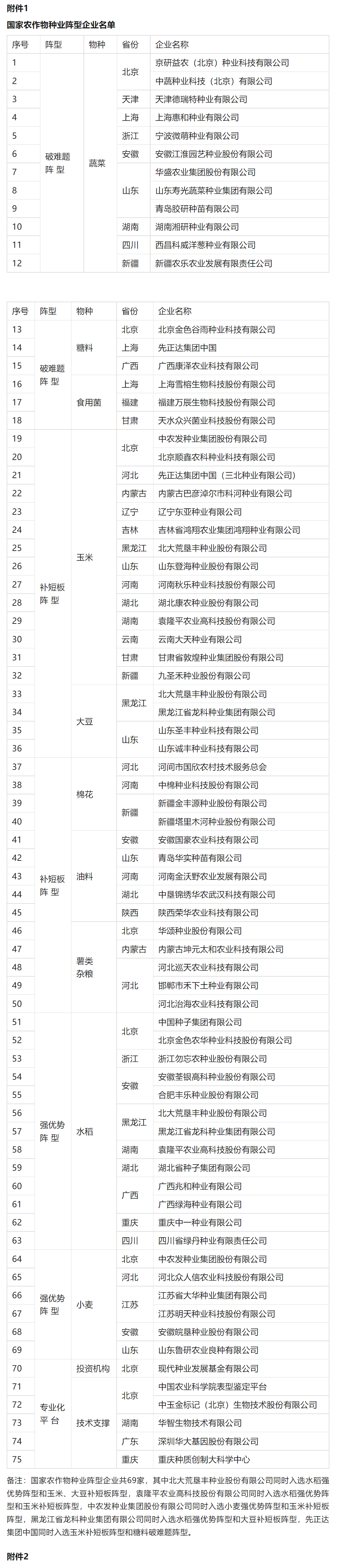 附件:1. 國家農(nóng)作物種業(yè)陣型企業(yè)名單